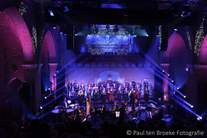 En of het er van kwam! Op 9 en 10 april was daar De Toekomst van een Verleden. De titel kreeg er door de ironie én de ernst van de recente geschiedenis een dimensie bij. De oorlog in Oekraïne gaf extra gewicht aan het belang van het thema en deed iedere aanwezige beseffen hoe groot het belang van de boodschap was die hier verkondigd werd. In de schitterende – en twee maal uitverkochte - ambiance van de Theaterkerk in Bemmel zorgde het 35 stemmen tellende projectkoor, begeleid door La Sinfonia Contea, het Christoph Mac-Carty Combo en organist Leon Eijsbouts voor een voorstelling die niet alleen het kippenvel op de armen bracht, maar ook echt tot nadenken stemde. En dat alles vakkundig geleid door dirigent Ruben Smits die al die zangers en muzikanten samen tot zo’n natuurlijk, harmonieus geheel wist te smeden dat je je ging afvragen waarom de mensheid muziek altijd weer in hokjes wil indelen.